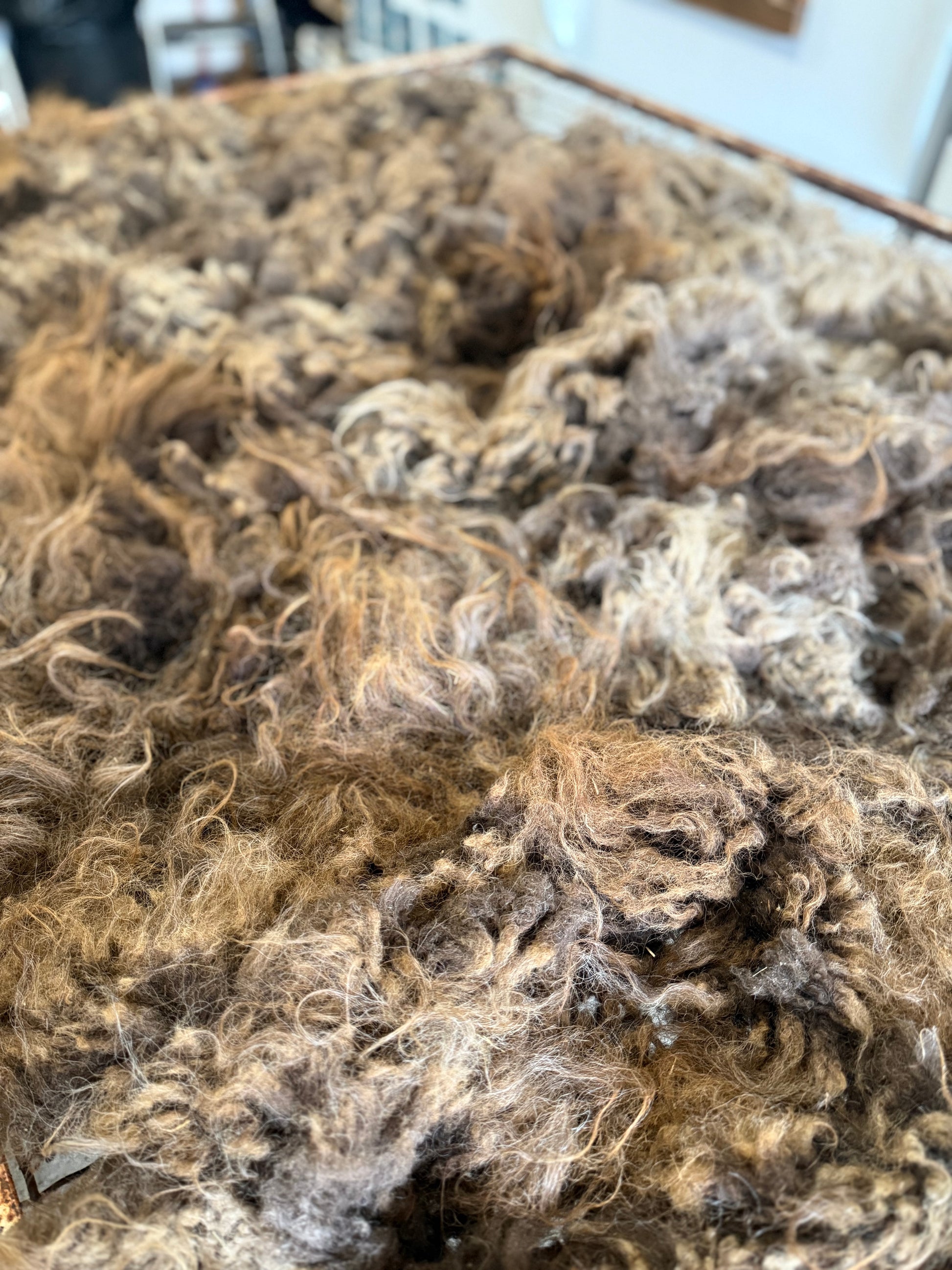 Isa's fleece is "moorit" in colour in terms of Icelandic sheep meaning she has a brown toned fleece. Her fleece has been lightly skirted weighing in at 2.80 lbs with locks averaging 4 inches.