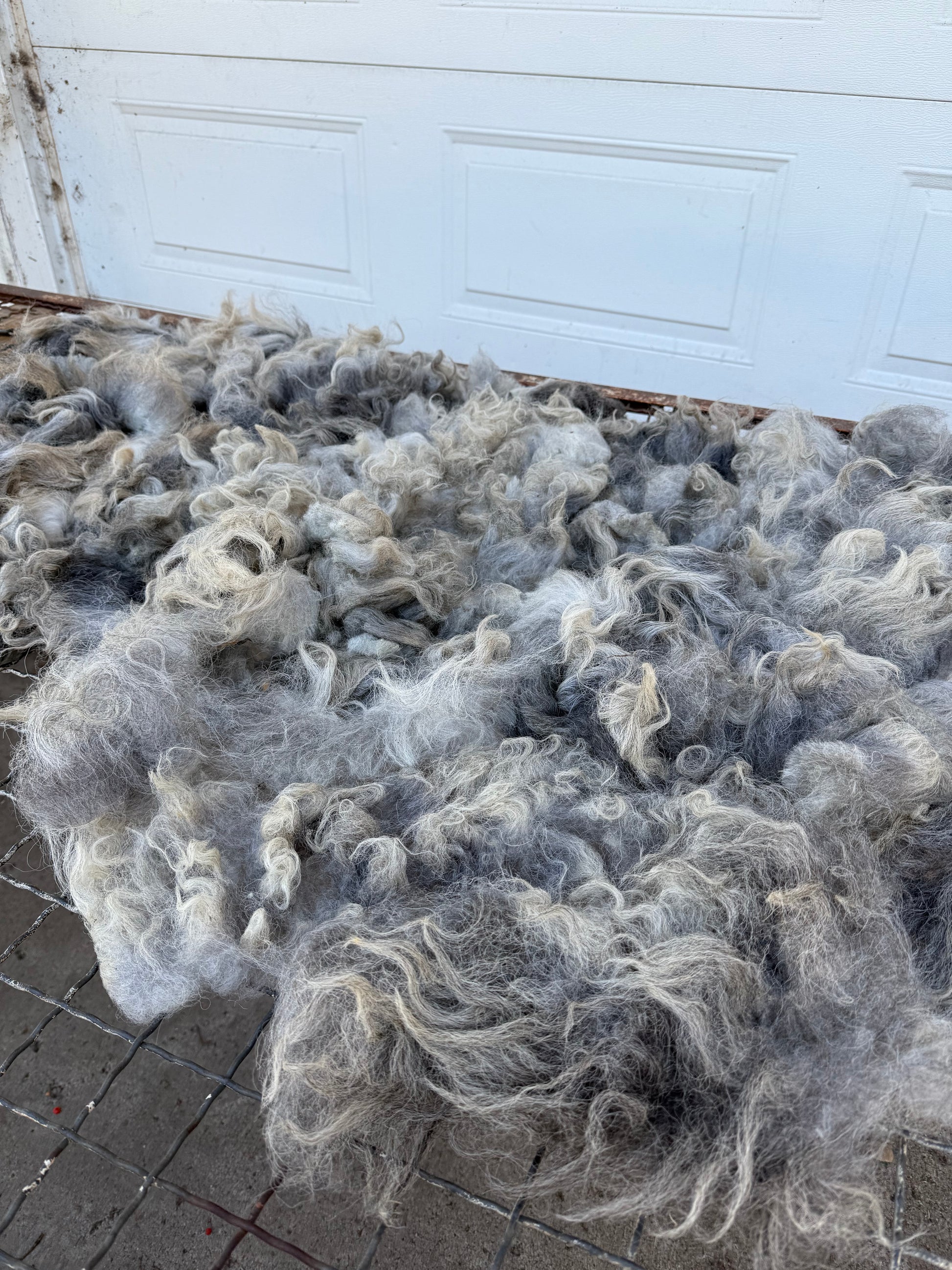 Spring 2025 Navajo Churro fleece from ram, Rowan. His fleece is 1.50 lbs with locks averaging 7 inches.